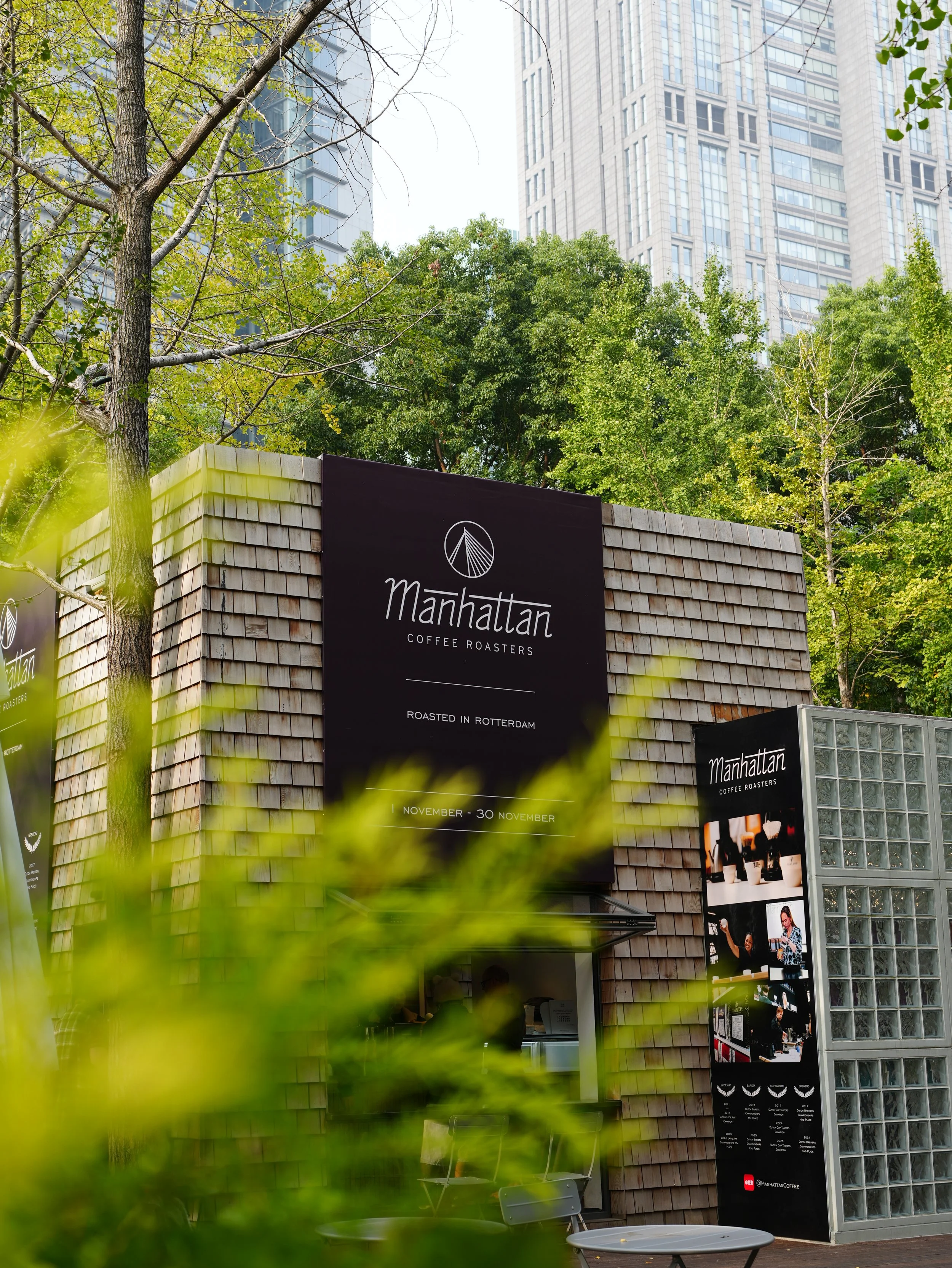 I created a promotional pop-up for Manhattan Coffee Roasters, which is located at Coffee Cube in the heart of Shanghai. Alongside the pop-up, I also designed various graphic materials for the brand, including banners for the facades and menus.
