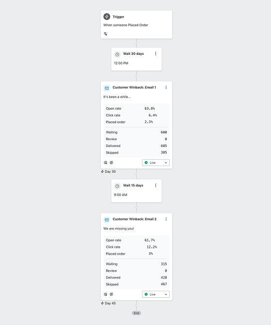 Zero automated email flows for customer engagement